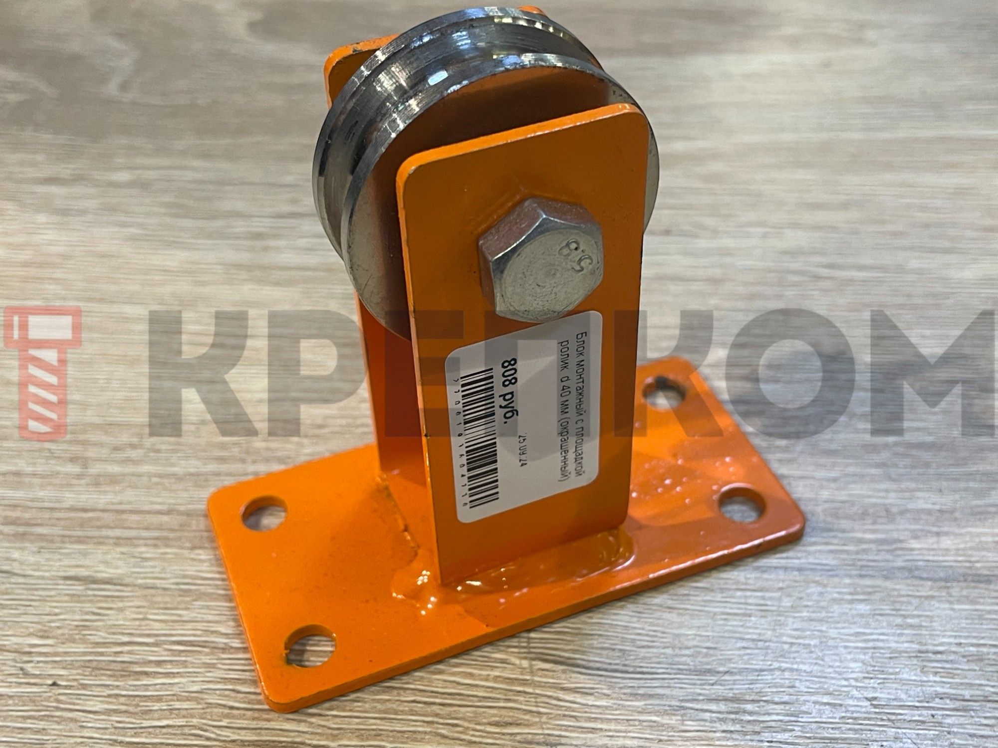 Монтажный блок на опоре с окрашенным корпусом – такелажное грузоподъемное изделие, применяемое для подъема и опускания грузов, состоящее из площадки крепления и ролика с подшипником.