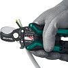 - Точный стриппер: специальные калиброванные отверстия в губках служат для аккуратного кольцевого снятия изоляции с проводов сечением от 0,5 до 6 мм² без повреждения жилы.