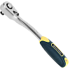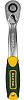 Рукоятка трещоточная 3/8" Kraftool Pro 27795-3/8_z02 с флажковым переключателем используется с торцевыми головками для обслуживания резьбовых соединений в местах с ограниченным пространством. Применяется при производстве работ со слабонагруженными резьбовыми соединениями. Храповое колесо в 72 зубца, обеспечивающее 5° свободного хода, гарантирует большой запас прочности при высоком крутящем моменте. Оснащена двухкомпонентной изогнутой рукояткой, обеспечивающей надежный захват инструмента при работе. Корпус выполнен из хромованадиевой (Cr-V) стали с хромированным покрытием, а трещоточный механизм - из хромомолибденовой (Cr-Mo) стали.