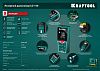 - 9 функций: обмен данными со смартфоном через Bluetooth, 2 точки отсчета, измерение по теореме Пифагора, измерение в метрах, дюймах, футах, измерение длины, площади, объема, 20 ячеек памяти, встроенный уклономер, поиск минимума/максимума, непрерывные измерения.