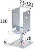 Регулируемая опора бруса 71-131х110 мм GAH ALBERTS 214500 для крепления столбов, колонн, вертикальных стоек и иных деревянных элементов к бетонному основанию. Конструктивно представляет собой U-образное раздвижное крепление с одной стороны, приваренное к арматурному штырю и перфорированную пластину с другой. Для крепления бруса к основанию используются саморезы, шурупы, ершёные гвозди, для фиксации к бетону применяются анкеры. Предназначен для возведения лёгких небольших построек: заборов, навесов, пергол, декоративных ограждений.