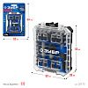 Отвёртка с битами SL, PH, PZ, TX, HEX ЗУБР Компакт 25173 серии Профессионал является набором, который содержит 34 предмета: 31 бита, отвертка и 2 адаптера. Конструкция упаковки и расположение бит представляет собой предел компактности. Z-бокс изготовлен из пластика, имеет габариты 90х38х115 мм и снабжен зацепками для мгновенной стыковки с другими кейсами такой системы.