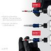 - Двухкомпонентная отвёрточная рукоятка удерживает биты посредством адаптеров.