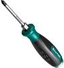 Такую отвёртку не нужно давить всем телом, а для особенно сложных случаев предусмотрена возможность дополнить её мощность другими рычагами: на стальном ударопрочном затыльнике есть квадратное углубление (SQ1/4") для подсоединения трещотки, а перед рукояткой помещена шестигранная гайка, которую можно вращать вместе с отвёрткой с помощью гаечного ключа.