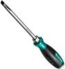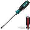 Отвертка с прямым шлицем SL Kraftool серии Impact - инструмент, предназначенный для демонтажа перетянутых, заржавевших и прикипевших винтов и саморезов. Механизм преобразует удар молотком по затыльнику во вращательное усилие, проворачивая наконечник на небольшой угол и разрушая ржавчину в резьбе винта. Давление идёт строго вдоль оси винта, без срыва шлица. Ударные отвёртки особенно полезны в авторемонте, сантехнических работах и при обслуживании металлоконструкций и оборудования.