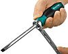 Такую отвёртку не нужно давить всем телом, а для особенно сложных случаев предусмотрена возможность дополнить её мощность другими рычагами: на стальном ударопрочном затыльнике есть квадратное углубление (SQ1/4") для подсоединения трещотки, а перед рукояткой помещена шестигранная гайка, которую можно вращать вместе с отвёрткой с помощью гаечного ключа.
