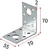 Уголок крепежный 55х70х70х2 мм KU, оцинкованная сталь