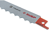 Полотно для сабельной пилы ЗУБР Эксперт предназначено для прямых и криволинейных пропилов в твёрдой и мягкой древесине, фанере, пластике и ДСП. Применяется на сабельной электрической ножовке (электролобзик) при резке древесины до 100 мм, ДСП до 60 мм. Полотно имеет увеличенную толщину сердечника по сравнению с полотнами других производителей, что даёт им повышенную устойчивость к излому при перегибе и лучшую прямолинейность при резке обрабатываемого материала. Хвостовик 1/2" (полудюймовый) с отверстием для фиксационного штифта — один из самых распространенных и популярных типов крепления для современных сабельных пил.