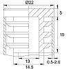- Имеет конструкцию из плоской круглой шляпки и цилиндрической втулки с разделёнными рёбрами для надёжной фиксации в трубе.