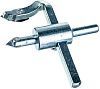 Сверло состоит из прочной стальной рамы, загнутой под прямым углом. На её конце закреплен основной режущий резец, а вдоль нее перемещается центрирующее сверло, которое фиксируется с помощью винта. Такая конструкция, напоминающая циркуль, позволяет плавно регулировать диаметр реза в широком диапазоне от 40 до 130 мм. При работе центрирующее сверло точно позиционирует инструмент, а основной резец прорезает окружность, оставляя в центре керн.