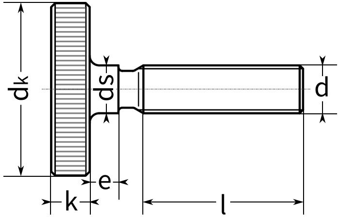 Винт М8х12 DIN 653 с накаткой применяется для скрепления и стягивания элементов быстроразборных конструкций, а также для ручной настройки механизмов путем затягивания или ослабления прижимного болта.