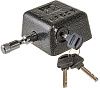- Корпус замка полностью закрывает запорный закалённый стальной штырь, исключая возможность спиливания.
