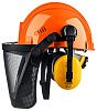 - В одном комплекте объединены сама каска, пассивные наушники с эффективностью шумоподавления 27 дБ (защита до 107 дБ) и защитный экран из стальной сетки размером 190x339 мм.